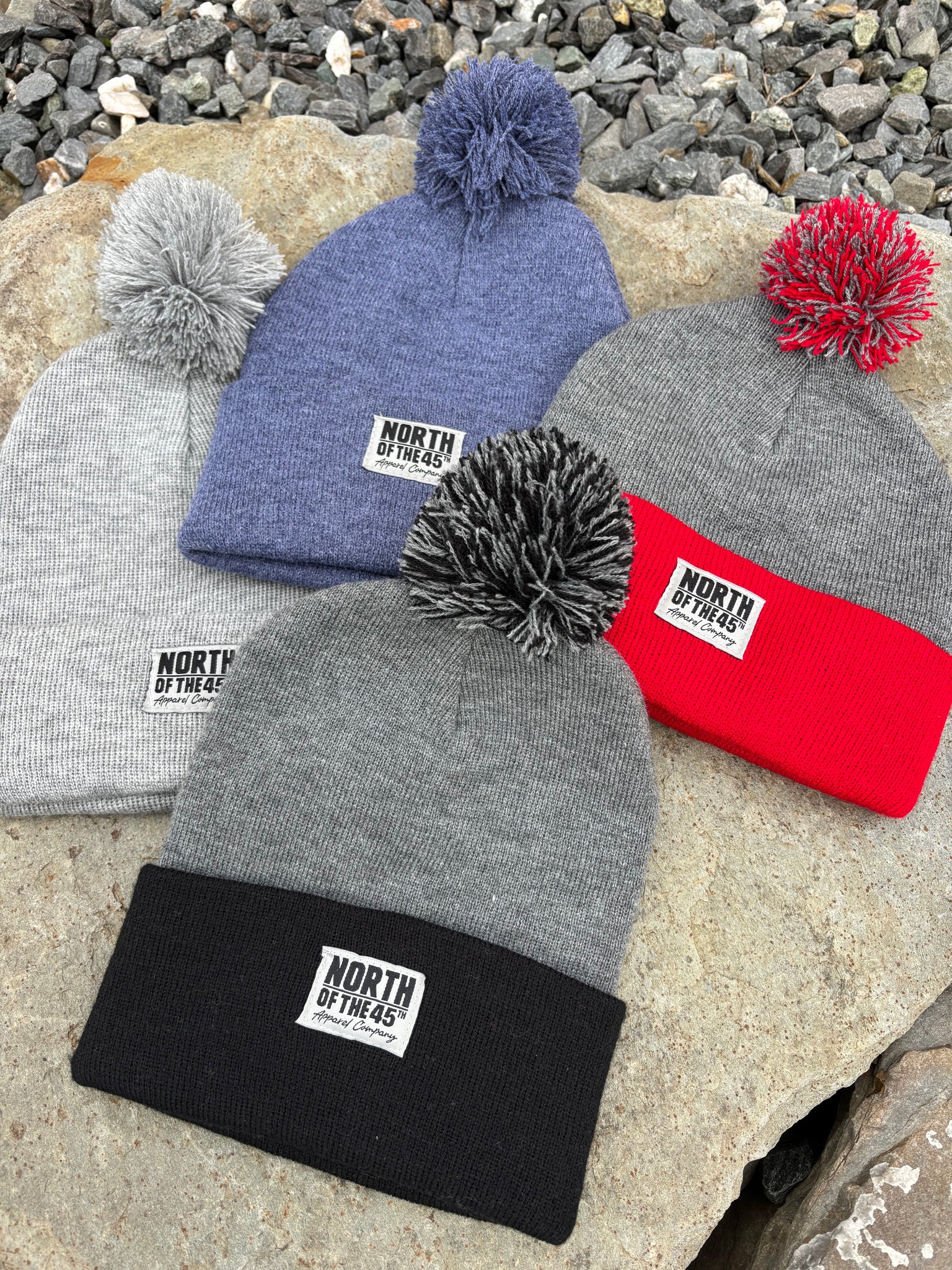 Winter Pom Pom Beanies with our simple woven label!