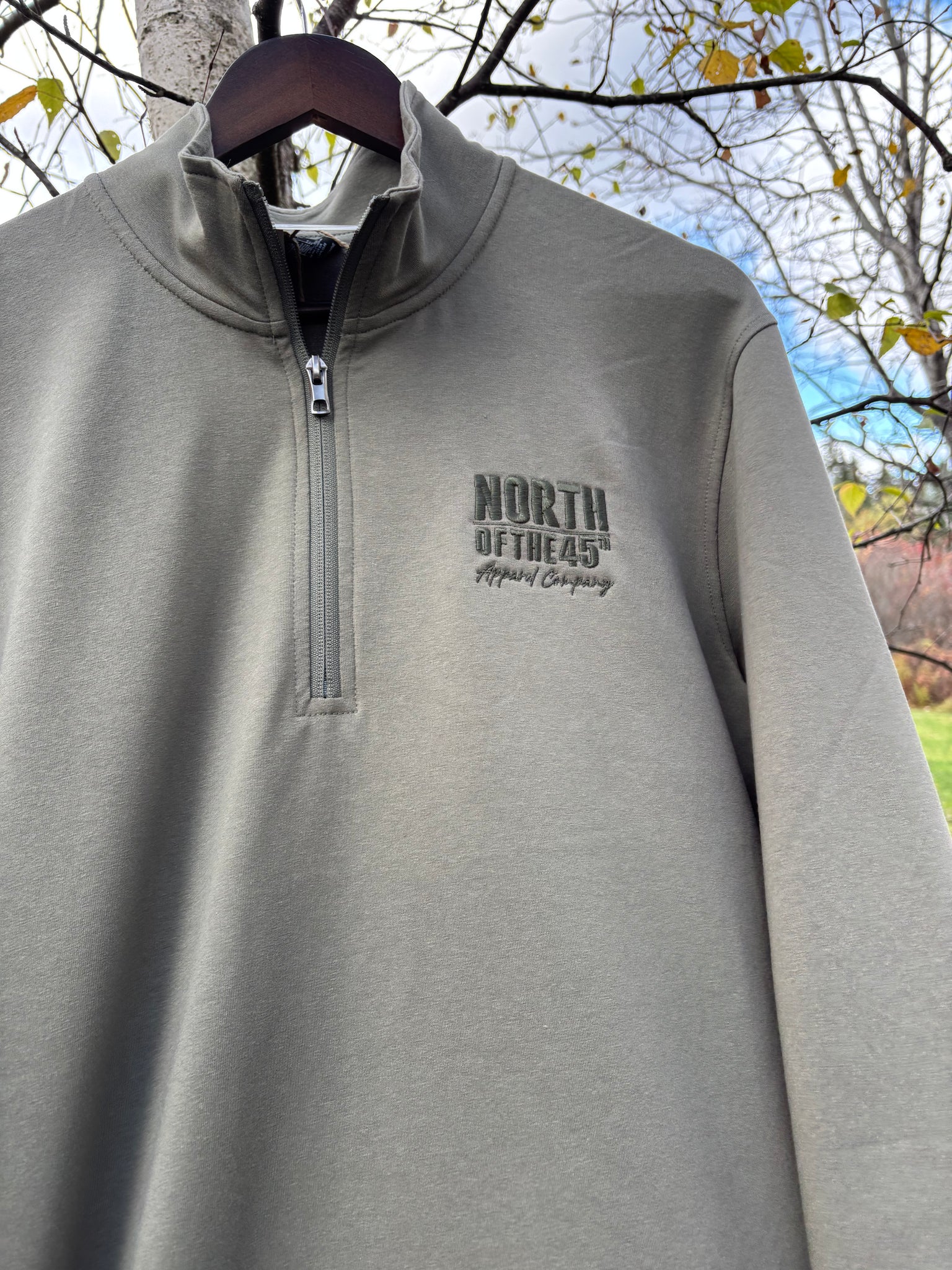 Lightweight Quarter Zip with Left Chest embroidered logo! 60% Cotton 34% Polyester 5% Spandex